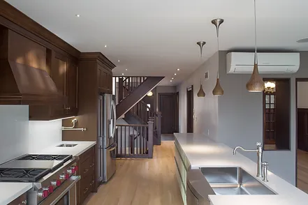 Toronto East Side Addition and Renovation Sustainable Features Reuse and recycling of homes materials and featuresUse of natural materialsFSC lumber used Locally sourced wood Zero VOC finishes used on all surfaces and millworkThe use of low embodied carbon materials throughoutNon toxic glues and sealants sourced and used Energy efficient, approaching passive house standardsReuse of existing radiant heating systemNew whole home ventilation with an ERVDurable new composite recycled slate like roof shingles Project Photos Want to work with us? Contact us to discuss your next project Get in touch