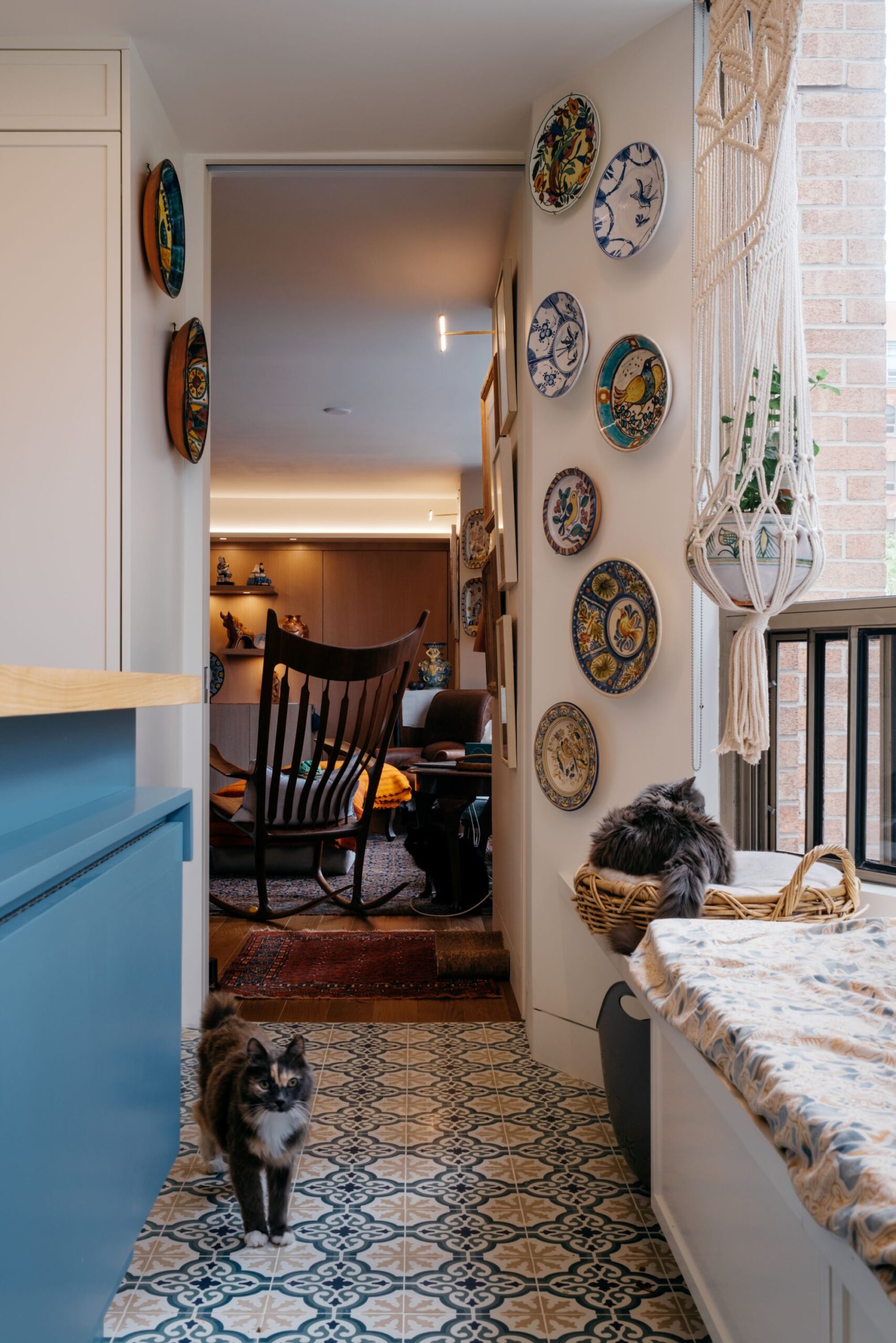 This project originated from our client’s need to downsize from a single-family home to a condominium, driven by various personal considerations. The condo will accommodate five residents, two office spaces, ample living and entertaining areas, and specialized storage, an extensive art collection, whiskey and wine collections, electric bikes, and five cats.