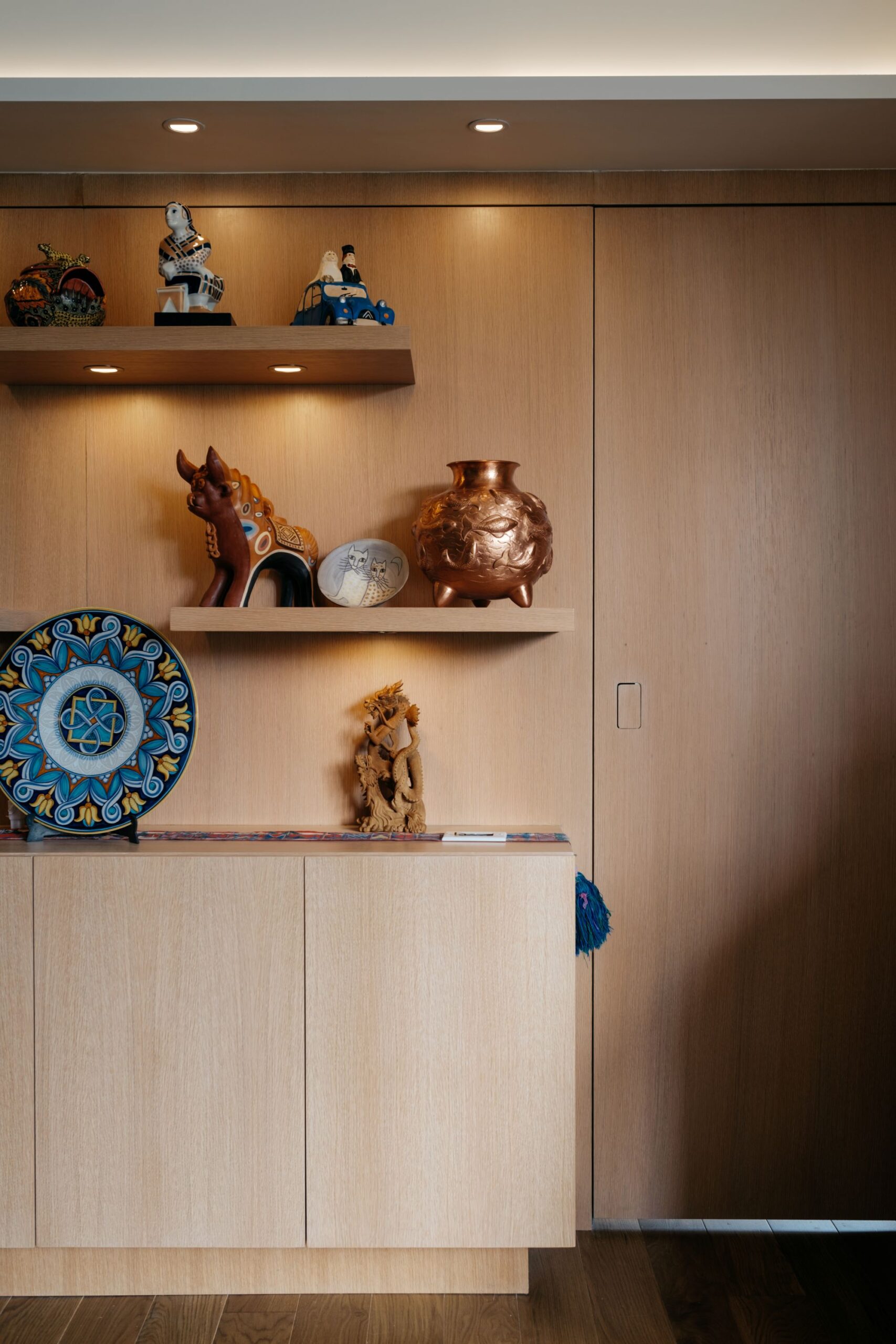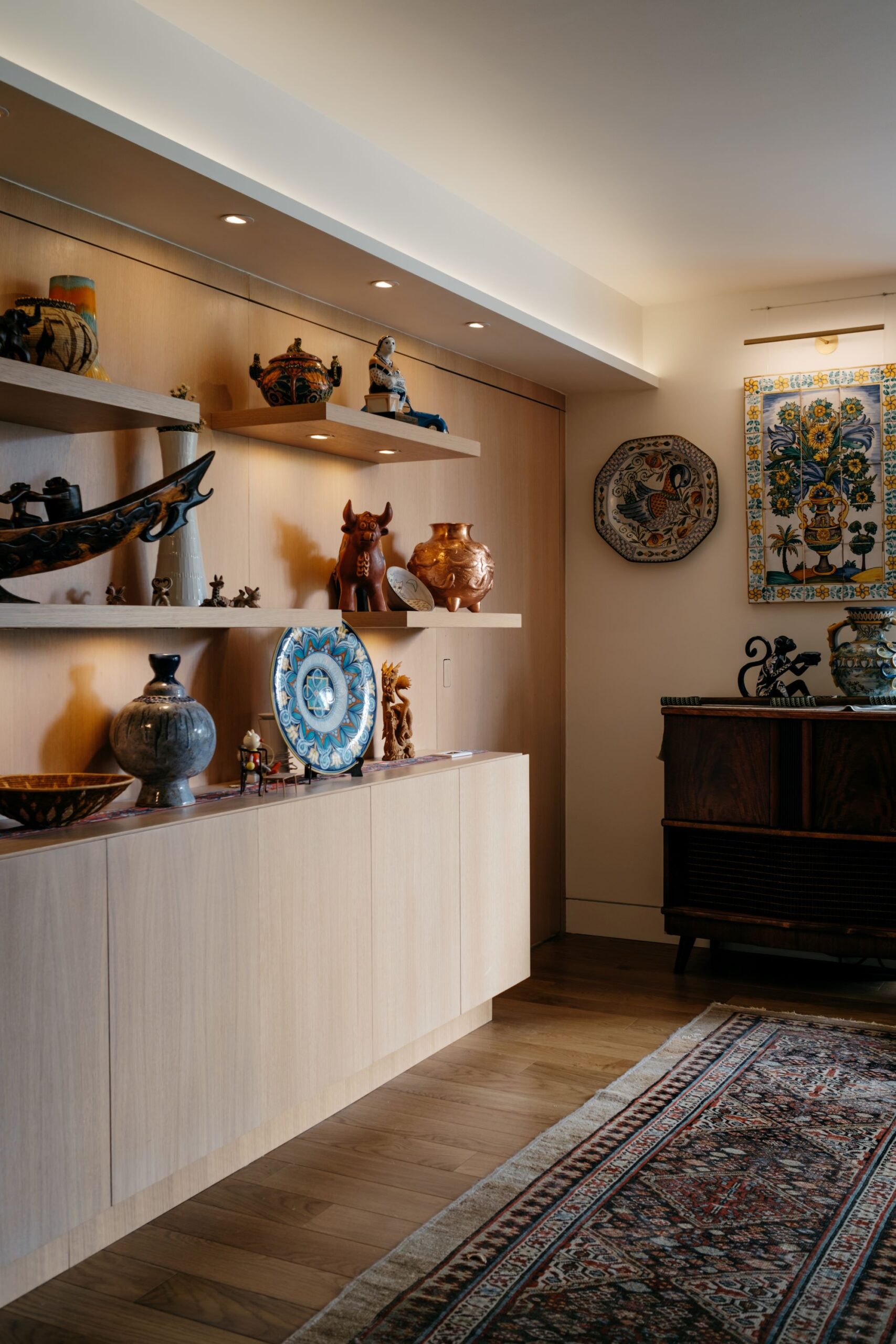 Extensive Art Collection: The design of the millwork and walls was meticulously planned to showcase an extensive art collection. The Stas art hanging system was seamlessly integrated into the plastered walls, creating a pristine gallery-like atmosphere.