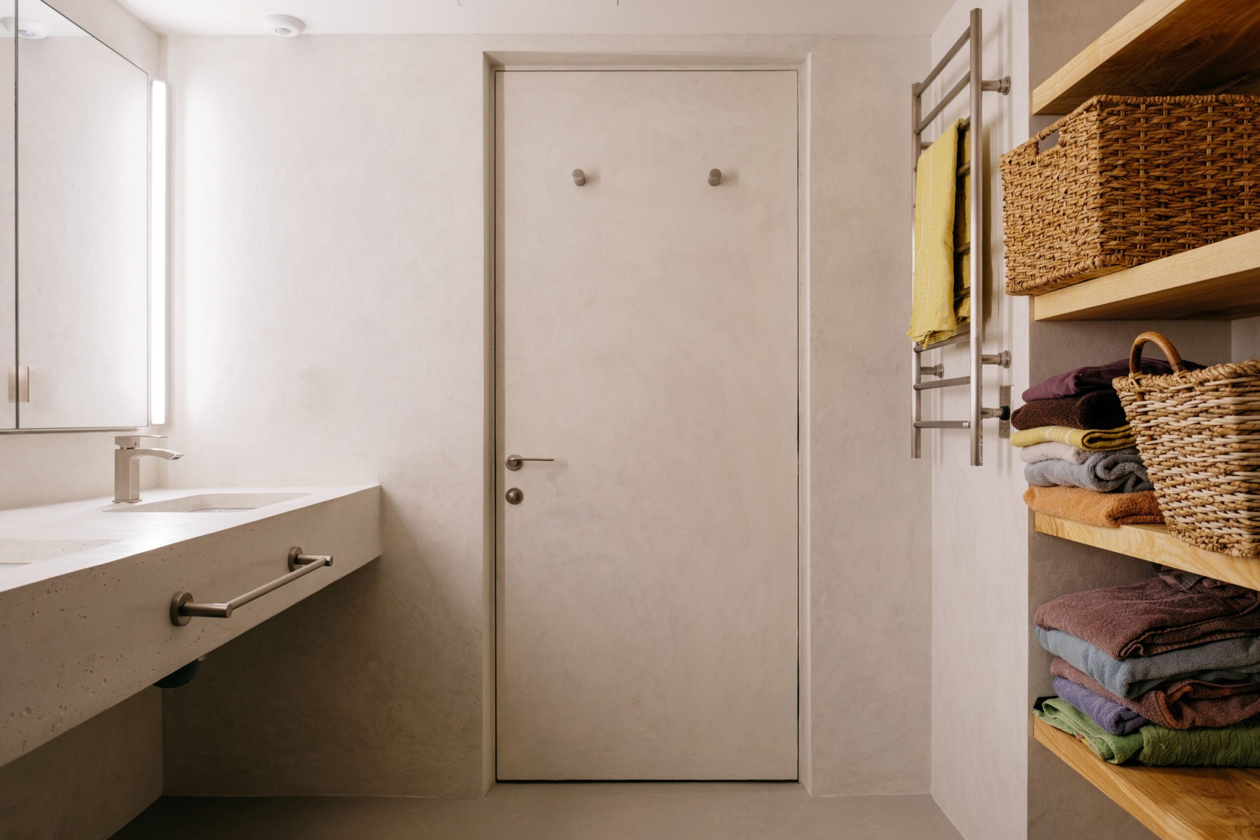 Natural Plasters: Lime-based veneer plasters were used throughout the condo interior.