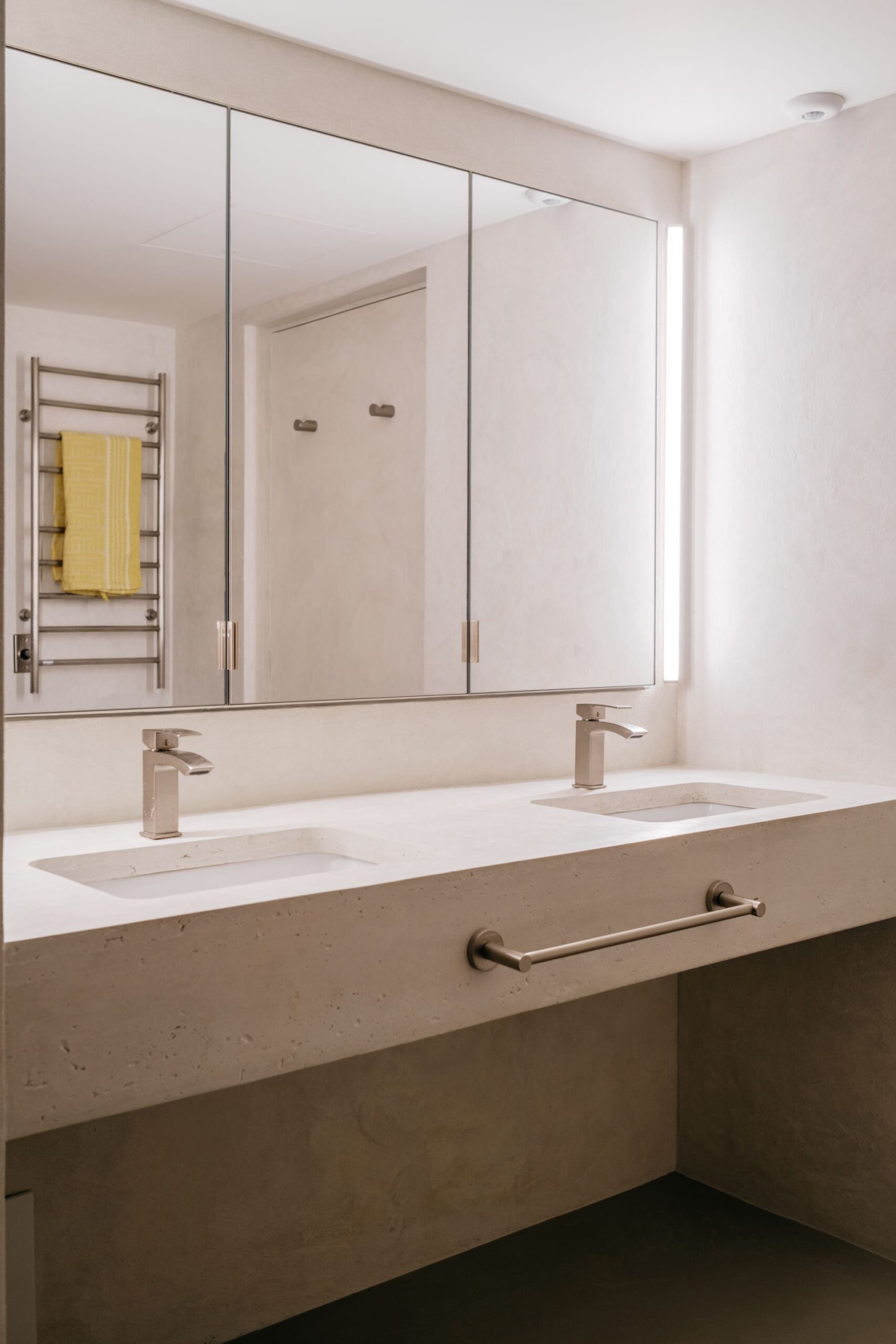 Custom Concrete Countertops: The washroom countertop was custom-made by a local artisan.